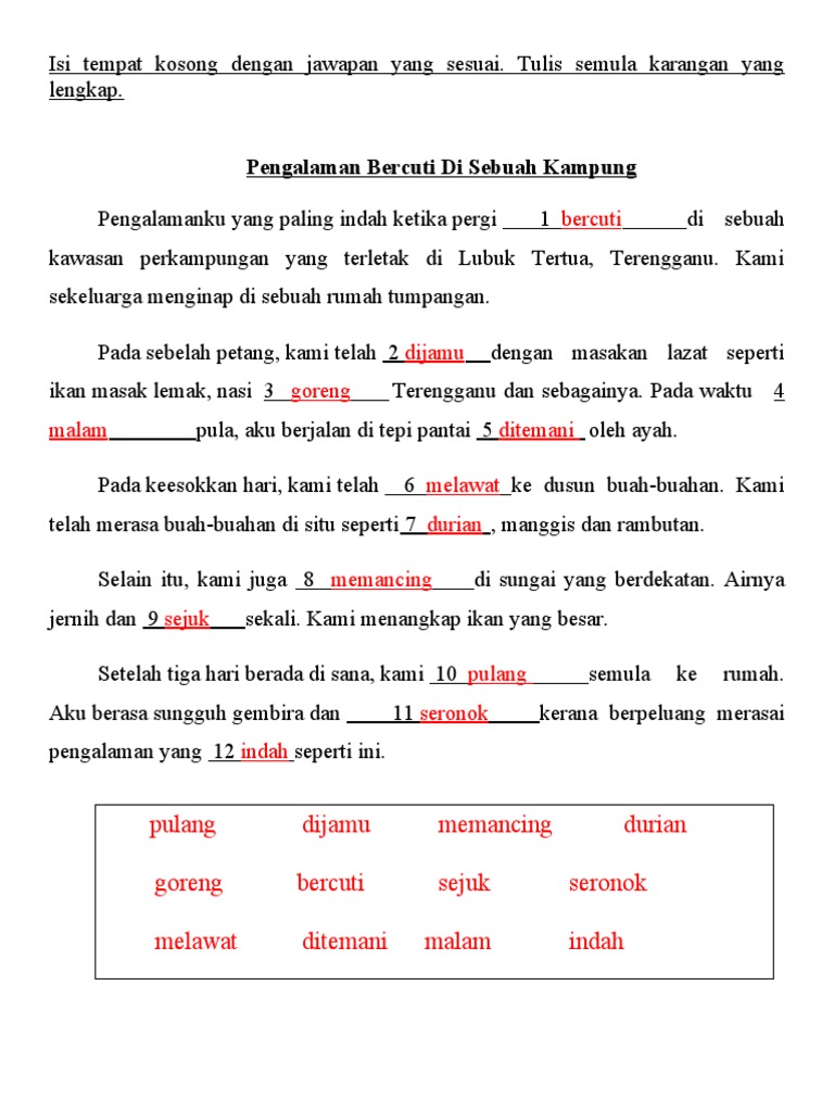 Pengalaman Bercuti Di Kampung Doc Soalan Kamu Dan Keluarga Telah Pulang Ke Kampung Anda Pada Masa Cuti Tulis Karangan Tentang Pengalaman Percutian Course Hero